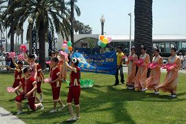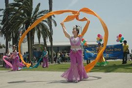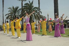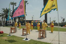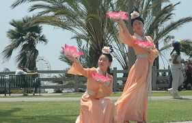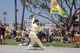 Le 13 mai 2006, sur la plage de Santa Monica, les pratiquants de Los Angeles et de la région du Orange County se sont rassemblés avec joie, pour célébrer respectueusement le 55e anniversaire du Maître, la 7e Journée mondiale du Falun Dafa et le 14e anniversaire de la transmission du Falun Dafa au public.