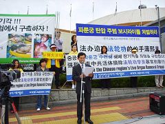 M. Cui, au nom des pratiquants du Falun Gong en Corée, a lu une déclaration condamnant et énumérant les crimes sanglants de Bo contre les pratiquants innocents du Falun Gong depuis 1999. La déclaration estime que la visite de Bo est une honte pour les Coréens. Bo devrait quitter la Corée.