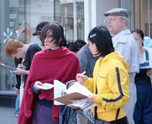 Aux expositions de photos et d’anti-torture des pratiquants de Falun Gong, beaucoup de personnes ont pleuré car elles étaient peinées de voir cette persécution. Je me souviens d’un texte qui disait qu’un homme avait commencé à pleurer au kiosque après avoir entendu la vérité des faits sur le Falun Gong. Il avait quitté le lieu en pleurant. Quand il était revenu peu après, il avait recommencé à verser des larmes.