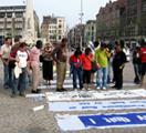 L'exposition sur la place avait des bannières en chinois, en anglais et en hollandais pour exprimer le soutien aux dix millions de personnes qui ont démissionné du PCC et pour protester contre le prélèvement des organes des pratiquants de Falun Gong vivants par le PCC. En même temps, des photos révélant la persécution des pratiquants de Falun Gong ont été exposées, et elles ont attiré beaucoup de gens venues regarder. Les bénévoles et les pratiquants du Falun Gong ont distribué des pamphlets en chinois, en anglais et en hollandais. Beaucoup de personne ont été choquées et ont condamné les actes sauvages du PCC prélevant les organes de personnes vivantes.