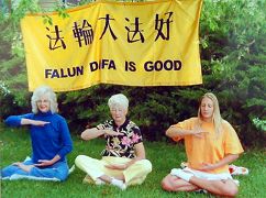 Dotty, sa fille et sa petite-fille faisant les exercices du Falun Gong ensemble.