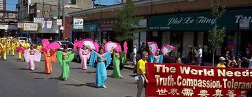 La Fanfare La Terre divine composée de plus de 200 pratiquants du Falun Gong a fait sa première apparition dans le Chinatown de Chigago. La fanfare est apparue récemment dans les parades à grande échelle, à Manhattan et à Washington DC lors des processions du Falun Gong. Ils ont joué plusieurs pièces puissantes durant la marche, attirant l’attention et les applaudissements du public.