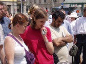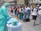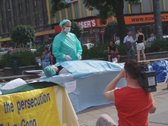 Les pratiquants de Hongrie ont mis en scène certaines atrocités des droits de l’homme perpétrées par le PCC afin d’alerter la population sur les pratiques inhumaines dans les camps de travail en Chine. La réponse a été spontanée et unanime, beaucoup de gens ont voulu en apprendre plus.