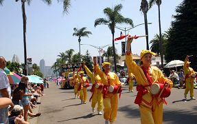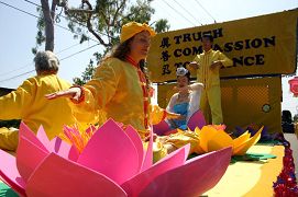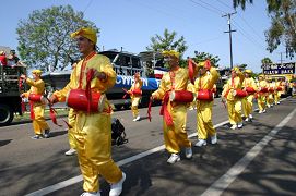 Le défilé du Falun Gong était composé d’une banderole de Falun Dafa, d’un char, de la troupe des tambours à la ceinture et d’une troupe de danse.