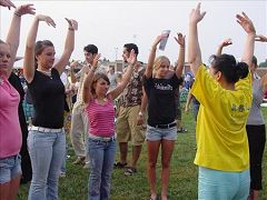 Les pratiquants ont distribué des documents de clarification de la vérité et ont offert un enseignement gratuit des exercices. Ils ont aussi recueilli des signatures demandant la fin de la persécution, spécialement le prélèvement des organes des pratiquants du Falun Gong encore vivants.