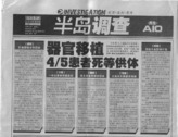 D'après un article paru dans le "Bandao Morning Post" de Dalian du 24 mai, des patients pourraient attendre pendant assez longtemps pour un don d'organe, mais il n'y a pas une telle attente pour les greffes de foie. Un patient a eu une greffe de foie le troisième jour après son arrivée à l'hôpital. L'hôpital a trouvé un donneur de foie compatible en dix jours pour un autre patient âgé de 59 ans.