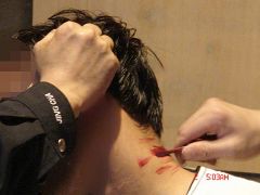 Il y avait un grand nombre de taches de sang dans la pièce, et Liu Chengjun ne parvenait visiblement pas se tenir droit à ce moment-là.