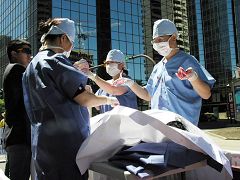Les pratiquants de Falun Gong de Calgary, Canada, ont organisé un défilé et un rassemblement le 8 juillet 2006, pour présenter les beautés du Falun Dafa et pour informer le public sur le rapport de l’équipe d’enquête canadienne qui confirme que le régime communiste chinois prélève les organes des pratiquants encore vivants en Chine.
