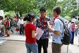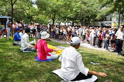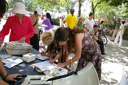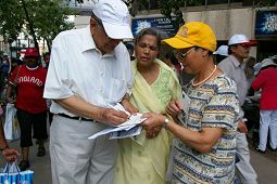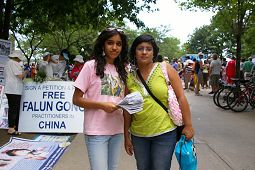 Le 15 juillet, la communauté indienne célébrait un festival religieux sur l'île centrale de Toronto. Beaucoup de gens attendaient le bac pour aller sur l'île. Les pratiquants de Falun Gong ont tenu des panneaux d'affichage sur lesquels on pouvait lire, « Signez s’il vous plaît pour demander la fin de la persécution contre le Falun Gong», ils ont distribué des documents de clarification de la vérité et rassemblé des signatures.