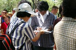 Mme. Zhou, une pratiquante âgée qui ne parle pas beaucoup anglais, a dit au journaliste, « Aujourd'hui, beaucoup de gens qui se sont renseignés sur la situation en Chine ont signé. Ils m’ont dit beaucoup de chose. Je ne pouvais que répondre, ‘Merci!’ Un couple m'a présenté un bouquet de fleurs. Un monsieur m'a donné une boisson non alcoolisée. La compréhension et l’aide des gens sont très émouvants. »