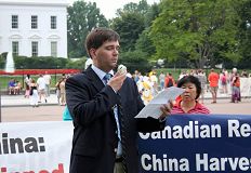 Dr Tortsen Trey, pratiquant de Falun Gong allemand, a aussi fait appel au public lors du rassemblement. Il a dit : « Le musée de l’Holocauste est à moins d’un mille d’ici. Nous devons apprendre les leçons de l’histoire, et nous devons apprendre sérieusement les leçons de l’holocauste. Nous devons apprendre à nous exprimer quand il le faut, et nous devons nous exprimer maintenant. De tels prélèvements d’organes non voulus sont inhumains et un crime contre l’humanité. De telles atrocités méritent l’attention non seulement du public en général mais aussi de mes collègues de la communauté médicale. Je demande à la communauté internationale, spécialement à la communauté médicale, de réaliser qu’il est temps de s’exprimer. Il ne sera jamais trop tard pour nous de nous exprimer, cependant, ceux qui choisissent de garder le silence, vont profondément le regretter dans le futur. »