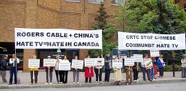 L'organisateur de l'activité a dit que le rassemblement protestait contre la proposition du Rogers Cable d’apporter neuf canaux de CCTV au Canada. Ils ont fait appel au CRTC, pour qu’il prenne la responsabilité de bloquer la propagande haineuse et qu’il sauvegarde les valeurs canadiennes.