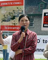 Mme Jin Jin, pratiquante du Falun Gong et ingénieure en logiciels à Toronto, a parlé de son expérience en Chine. Après que le PCC ait lancé la persécution du Falun Gong le 20 juillet 1999, Jin et sa famille ont été soumises à un Centre de lavage de cerveau. Pendant l'une des sessions, CCTV a demandé au secrétaire du Parti dans le lieu de travail de Jin, de faire pression sur Jin et sa famille pour une entrevue. Sous la menace de perdre leurs emplois et leur droit à l’éducation, Jin et sa famille ont été forcées de déclarer leur opposition au Falun Gong.