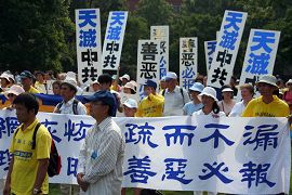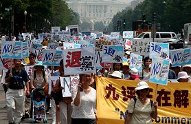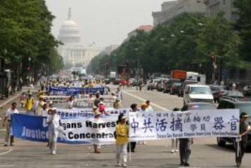 Environ 1.500 personnes de beaucoup pays ont participé au rassemblement du 21 juillet 2006 sur la place de la Lafayette, en face de la Maison Blanche, à Washington DC. Ils se sont rassemblés pour supporter les 12 millions de Chinois qui ont démissionné du Parti communiste chinois (PCC) et de ses organismes affiliés. Plus d’une dizaine de locuteurs ont analysé la tendance inévitable de la désintégration du PCC sous différents angles, y compris la persécution contre le Falun Gong et le prélèvement d'organes des pratiquants de Falun Gong encore vivants. Ils ont invité le peuple de la Chine à démissionner du PCC et de ses associations affiliées aussitôt que possible. Après le rassemblement, le groupe a organisé un défilé sous le thème des Neuf Commentaires, la démission du PCC et les efforts pour mettre fin à la persécution.