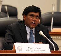 M. Kumar d'Amnesty International était très intéressé par le sujet de la persécution des pratiquants du Falun Gong qui sont non-violents. La situation est inquiétante. Quoiqu' Amnesty International ait demandé au PCC de mettre fin à cette persécution et de libérer les pratiquants du Falun Gong détenus pour leur croyance pacifique, elle s’étonne que le PCC n'ait pris aucune mesure. Au lieu de cela, il a continué à arrêter et à persécuter les pratiquants du Falun Gong. Certains ont été jetés dans des hôpitaux psychiatriques. Certaines familles ont été menacées et soumises à des mauvais traitements.