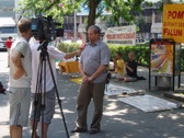 Un journaliste de la TV Slovaque est venu pour filmer l'évènement. Il a interviewé deux pratiquants et a beaucoup appris sur la persécution du Falun Gong, sur les prélèvements d'organes en Chine ainsi que sur le soutien des dignitaires aux pratiquants persécutés tel que le Vice Président du Parlement Européen M. Edward McMillan-Scott. Il a compilé ces faits dans un reportage qui a été diffusé dans le journal national du soir.