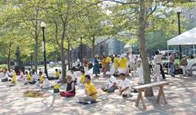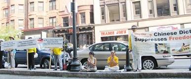 De nombreux pratiquants de Falun Gong venus du monde entier se sont rendus à Boston aux alentours du 23 juillet 2006, pour inviter la communauté médicale spécialisée dans les greffes d’organes à se pencher sur les crimes du Parti communiste chinois au sujet du prélèvement des organes sur des pratiquants encore vivants. Les pratiquants ont reconstitué le prélèvement des organes dans des parcs à tous les jours pour éveiller la conscience des gens à ce sujet.