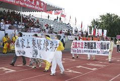 Plus de 70 groupes ont assisté à l'événement sportif de la fédération. À l'ouverture, les pratiquants tenaient une longue banderole de 5 pieds de long disant « Falun Dafa» et la Fanfare de la Terre Divine a joué la chanson « Falun Dafa est bon. » Les gens ont apprécié le spectacle et ont applaudi.