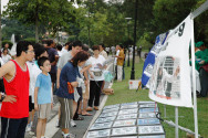 Le centre de service pour quitter le Parti communiste chinois(PCC) de Malaisie a tenu des activités dans le parc de Kuala Lumpur le 3 septembre 2006 pour soutenir les 1,3 million de chinois qui ont quitté le PCC et ses organisations affiliées. Ils ont exprimé leur soutien pour l'action juste de l'ancien pilote de la China Eastern Airline M. Yuan Sheng, qui a parlé aux gens des neuf commentaires et des démissions du PCC. Ils ont aussi condamné le PCC pour l'arrestation de l'avocat des droits humains Gao Zhisheng. Beaucoup de pratiquants de Falun Gong de Malaisie sont venus pour soutenir l'activité et dénoncer la persécution par le PCC.