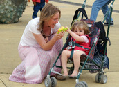 Le plaisir d'une mère et de sa fille qui ont reçu une fleur de lotus en papier. |