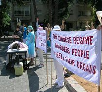 Il faisait très chaud, avec les températures atteignant 32-34 degrés Celsius. Néanmoins, les pratiquants ont toujours tenu leur activité sous le soleil brûlant. Afin de faire connaitre la persécution du Falun Gong à plus d’Israéliens, les pratiquants ont fait une série des banderoles disant : « Arrêtez la persécution du Falun Gong», « Le PCC prélève les organes sur des pratiquants du Falun Gong encore vivants », etc. Pendant l'activité, ils ont simulé l'atrocité du PCC au sujet du prélèvement d’organes sur les pratiquants du Falun Gong encore vivants.