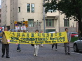 Times et des pratiquants de Falun Gong se sont rassemblés et ont défilé afin de