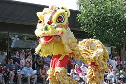 Un lion blanc dansant a favorablement impressionné les spectateurs l’an dernier. Cette année c’est un lion d’or qui est apparu fort et puissant. La danse du lion a reçu des ovations pendant le défilé.