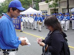 Après le défilé, la fanfare a joué dans la rue pendant deux heures, pour les citoyens. Les membres de la fanfare ont distribué de la documentation révélant la vérité au sujet de la persécution du Falun Gong par le Parti communiste chinois. De nombreuses personnes ont signé leurs noms sur la pétition demandant au gouvernement canadien d’agir afin que cesse cette persécution.
