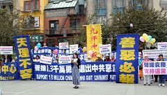 Des gens de différentes organisations de la région de la Baie de San Francisco ont organisé un rassemblement le 9 septembre 2006, au Garden Corner Square, dans le Chinatown de San Francisco pour soutenir les 13 millions et plus de personnes qui ont démissionné du Parti communiste chinois et de ses organismes affiliés. Ils ont aussi demandé la libération immédiate de l’avocat Gao Zhisheng.