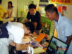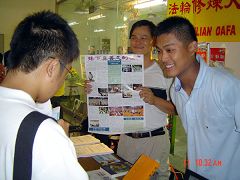 Le 11 septembre, la foire annuelle des clubs de l'université nationale de Dong Hwa s’est tenue pour accueillir les nouveaux étudiants. Bien qu'il pleuvait très fort, l'événement était très dynamique et beaucoup de gens sont venus. Le club de Falun Dafa a présenté les bienfaits de la pratique avec un film documentaire, a présenté les cinq d'exercices, distribué des dépliants et de jolis signets décorés de belles fleurs de lotus faites à la main et a clarifié la vérité de la persécution brutale de la pratique en Chine. L'atmosphère paisible du kiosque de Falun Gong contrastait de façon spectaculaire avec l’ensemble bruyant de la foire.
