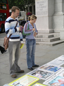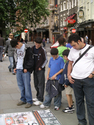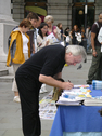 A la fin de la marche quelques petites activités ont été mises en place dans le centre de Londres. Les pratiquants ont disposé des posters d’informations sur le trottoir afin de permettre aux gens d’avoir plus d’information sur le Falun Gong et la persécution. De nombreuses personnes sont restées longtemps à lire les informations et à regarder les démonstrations des exercices du Falun Gong. Une collecte de signature a été aussi faite permettant ainsi à de nombreuses personnes désireuses de s’opposer aux abus du PCC de contribuer à mettre fin à la souffrance des pratiquants du Falun Gong.
