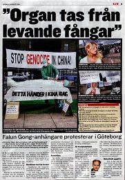 Le 12 août, le Goteborg Evening Daily (un des plus grands quotidien suédois) a publié une page complète sur les atrocités du prélèvement d’organes du Parti communiste chinois (PCC). Ci-dessous est une transcription de l’article :