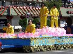 les exercices du Falun Gong sur le char. Les spectateurs ont applaudi et
