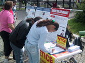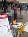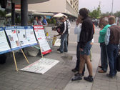 La plupart des passants ont été choqués en voyant les informations exposées et sans hésitation ils ont exprimé leur sympathie.et leur bienveillance. La plupart ont été médusés en lisant les banderoles et certains après avoir demandé plus de détails ont signé la pétition. D’autres ont pris plaisir à regarder la performance des exercices du Falun Gong et ont dit vouloir les apprendre et certains ont même acheté le livre.