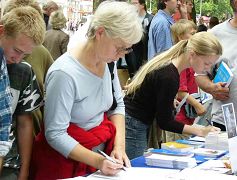 Vers midi, le 2 septembre, les pratiquants à Hambourg sont allés à l'Ida Ehre Platz, au centre- ville pour expliquer les faits de Falun Gong aux résidents locaux et pour exposer le prélèvement d'organes des pratiquants encore vivants par le parti communiste chinois (PCC). Ils ont parlé aux gens au sujet des crimes de Li Lanqing et Bo Xilai dans la persécution. Après s'être renseignés sur les faits, beaucoup de gens ont signé la pétition. Certains ont voulu apprendre les exercices, comprendre la différence entre le Falun Dafa et d'autres pratiques et ont demandé comment aider les pratiquants à arrêter la persécution.