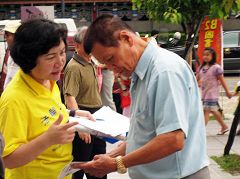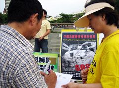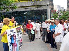 Dans l'après-midi du 3 septembre 2006, un groupe de pratiquants du Falun Gong est venu au temple de Lungshan, un site touristique à Taïpeh, pour exposer les atrocités du parti communiste chinois (PCC), de prélever et de vendre à profit les organes des pratiquants du Falun Gong vivants. Beaucoup de gens ont regardé des affiches tout en écoutant les explications des pratiquants et bon nombre d'entre eux étaient choqués et indignés par ces horreurs.