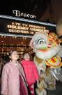 Les spectateurs prennent des photos avec le Lion chinois à l’entrée du théâtre, ils partent à contre-coeur.