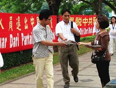l’ambassade communiste chinoise pour manifester contre la persécution du Falun