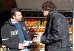Ils nous ont laissés également mettre des prospectus sur le panneau d'affichage du centre médical. A l'extérieur du village de Zagora, une dame vendait des chocolats aux fruits et aux noisettes sur le bord de la route. Lorsqu'elle a appris les horribles crimes de collecte d'organes à vif sur les pratiquants de Falun Gong, elle a été profondément bouleversée et consternée. Elle a dit: "Ils ne sont pas humains, ceux qui font ces choses ne peuvent pas être des humains! Ce sont des démons, ils sont assurément des démons!?" Elle a tout de suite accepté de nous aider à faire passer l'information à d'autres personnes et a placé une pile de prospectus sur son étal de produits pour les distribuer aux passants. Nous étions très heureux pour son salut et avons une fois de plus découvert combien ce que nous faisions avec notre cœur était droit et combien les cœurs de certaines personnes sont encore purs et justes et combien il est important pour les gens d'apprendre la collecte d'organes et la persécution du Falun Gong ! La dame nous a sincèrement remercié de faire ce voyage qui lui a permis de connaître la vérité et a répété sans cesse: "N'allez pas seulement dans les villes, permettez à tout le monde de savoir, chaque grec doit entendre parler de la collecte d'organes."
