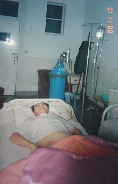 Wang a sauté et il est tombé inconscient immédiatement. Il était 18h:30 quand il a sauté et il est demeuré sur le sol, nu et inconscient, pendant deux heures et demie. Personne ne s'est arrêté pour demander ce qui se passait. Wang avait besoin d’être envoyé à l'hôpital pour un traitement d’urgence, mais Zhang Junsheng discutait des façons de dissimuler ses crimes avec ses complices. À 19h, ils ont fouillé la maison de Wang, mais n'ont pas trouvé aucune preuve de ce qu’ils recherchaient. À 21h, ils ont finalement envoyé Wang à l'hôpital régional de Lianshan et ils en ont avisé ses parents.