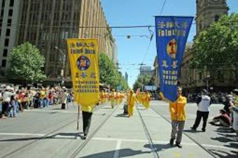 La présentation des pratiquants de Falun Gong a été bien reçue pendant le défilé de la fête nationale de l'Australie à Melbourne.