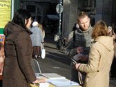 Le 16 décembre 2006, il y avait beaucoup de monde à Augsbourg. Pendant ce week-end ensoleillé, les gens étaient sortis et venus en ville pour flâner sur les marchés de Noël. Passant par King Square de nombreuses personnes ont été attirées par la musique élégante et les exercices paisibles des pratiquants du Falun Gong qui se déroulaient devant eux.