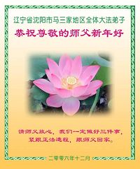 Tous les pratiquants de Falun Dafa de la région de Masanjia, ville de Shenyang, province du Liaoning souhaitent respectueusement une Bonne Année au Maître estimé!