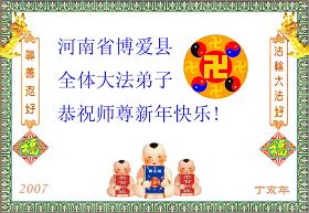 Tous les pratiquants de Falun Dafa du comté Boai, province du Henan souhaitent respectueusement une Bonne Année au Maître vénéré!