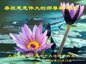 Tous les pratiquants de Falun Dafa du district Zhongshan, ville de Dalian souhaitent une Bonne Année à notre Maître bienveillant et grandiose !