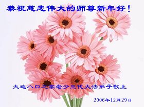 Bonjour Maître ! Les larmes coulaient le long de mon visage sans prendre la plume, vous manquez toujours aux disciples de Dafa en Chine continentale ! Nous attendons avec impatience le jour où nous pourrons nous réunir avec vous ! Avec l’arrivée de l’an 2007, au nom des disciples de Dafa des Forces de la police armée, nous transmettons nos voeux de Nouvel an à notre Maître vénéré et grandiose ! Maître, vous avez travaillé dur !