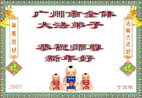 L’an 2007 arrive à grands pas, tous les pratiquants dans la ville de Nanning, région autonome de Guangxi remercient le Maître pour son salut bienveillant et ardu. Nous souhaitons à notre Maître bienveillant et grandiose une Bonne Année !