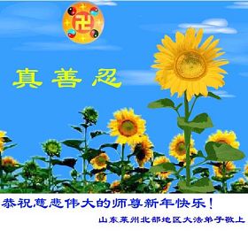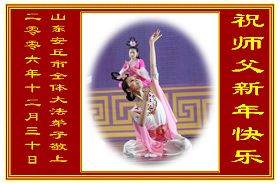 Les pratiquants de Falun Dafa de la province du Shandong souhaitent respectueusement au Maître bienveillant et grandiose une Bonne et heureuse Année !