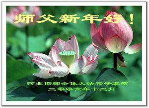 Les pratiquants de Falun Dafa de Handan, province du Hebei souhaitent respectueusement au Maître bienveillant et grandiose une Bonne et heureuse Année!
