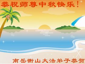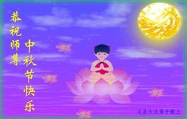 Tous les pratiquants des villages de Jiamusi, les pratiquants de Zhucheng de la province du Shandong, un site de production de documents appartenant à une famille de Zaozhuang de la province du Shandong, les pratiquants de Laiwu de la province du Shandong, tous les pratiquants de la ville de Yichun, région de Wumahe et région de Cuiluan, tous les pratiquants de Zhengzhou et de Xingyang, tous les pratiquants de la ville de Leshan de la province du Sichuan, tous les pratiquants du canton de Liangping de Chongqing, tous les pratiquants du canton de Kai de Chongqing, les pratiquants de trois bourgs et villages dans le canton de Changtu, tous les pratiquants de la ville de Yichang de la province du Hubei, tous les pratiquants du canton de Kaijiang de la ville de Dazhou dans la province du Sichuan, tous les pratiquants de la ville de Dazhou, canton de Da, canton de Dazhu, canton de Qu, canton de Kaijiang, canton de Xuanhan et de la ville de Wanyuan dans la province du Sichuan, les pratiquants qui sont illégalement détenus et persécutés dans le camp de travaux forcés pour femmes de Nanmusi à Zizhong dans la province du Sichuan, les pratiquants du district de Hedong de Tianjin, un pratiquant qui demeure loin de la maison et de toute sa famille dans le canton de Tanghe de la province du Henan, les pratiquants de la ville de Shaoguan, tous les pratiquants de la région de Baoji de la province du Shaanxi, tous les pratiquants du canton de Dazu de Chongqing, tous les pratiquants du district de Shuangqiao de Chongqing, tous les pratiquants du district de Haizhu de la ville de Guangzhou, les pratiquants du district de Yubei de Chongqing, tous les pratiquants du canton de Xuyong de la province du Sichuan, tous les pratiquants de la région de Mianyang de la province du Sichuan, les pratiquants de la région résidentielle de la voie ferrée No.2 de Jiamusi dans la province du Heilongjiang, les pratiquants de Yanjiang Shatan de la ville de Jiamusi, tous les pratiquants de la ville de Xianhe des champs pétroliers de Shengli, les pratiquants de Dongguang de la province du Hebei, tous les pratiquants de la ville de Qijiazi de la province du Liaoning, les pratiquants dans le domaine du commerce extérieur en Chine continentale, les pratiquants de l’École normale de l'Université du nord-est, souhaitent avec respect à notre vénéré Maître un joyeux Festival de la mi-automne !